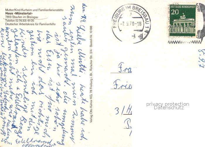 72796626 alte Postkarte Staufen Breisgau Haus Muenstertal postalisch gelaufen Erhaltung siehe scans [KathaD81] KatCode: 11110008315108