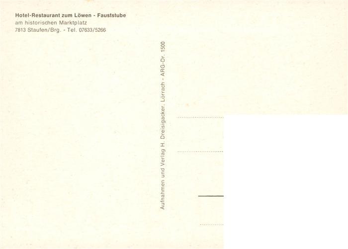 73879462 Staufen Breisgau Historische Fauststube zum Loewen Restaurant postalisch nicht gelaufen Erhaltung siehe scans [FriedD77] KatCode: 11110008315108