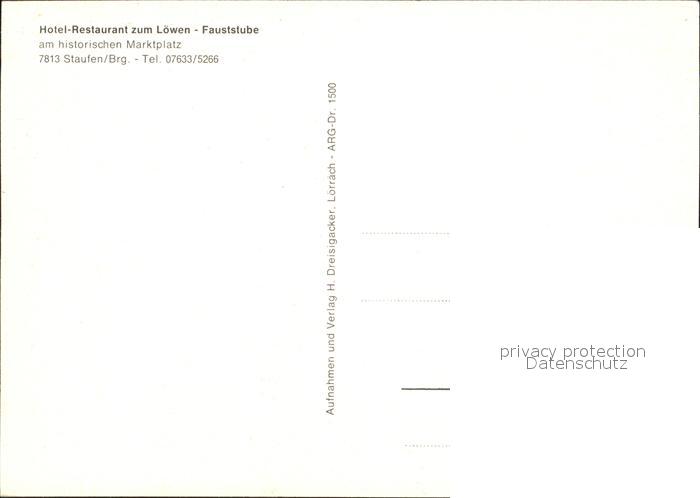 72014767 Staufen Breisgau Hotel Restaurant Zum Loewen Fauststube postalisch nicht gelaufen KatCode: 11110008315108