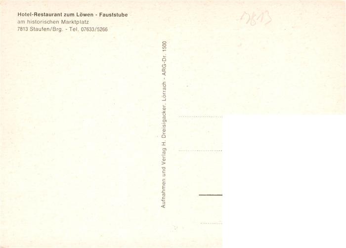 73934825 Staufen Breisgau Hotel Restaurant zum Loewen Fauststueble Zimmer postalisch nicht gelaufen Erhaltung siehe scans [WerneD78] KatCode: 11110008315108