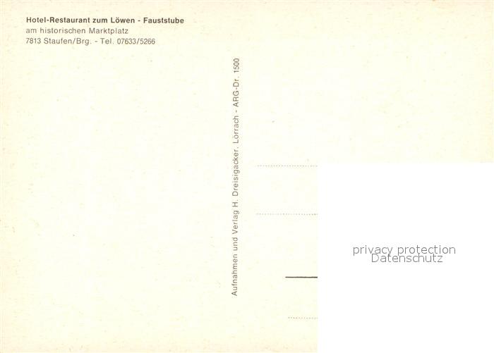 73182116 Staufen Breisgau Hotel Restaurant zum Loewen Gaststube Historische Fauststaette postalisch nicht gelaufen Erhaltung siehe scans [WerneD78] KatCode: 11110008315108