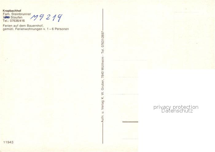 73161262 Staufen Breisgau Kropbachhof postalisch nicht gelaufen Erhaltung siehe scans [KathaD81] KatCode: 11110008315108