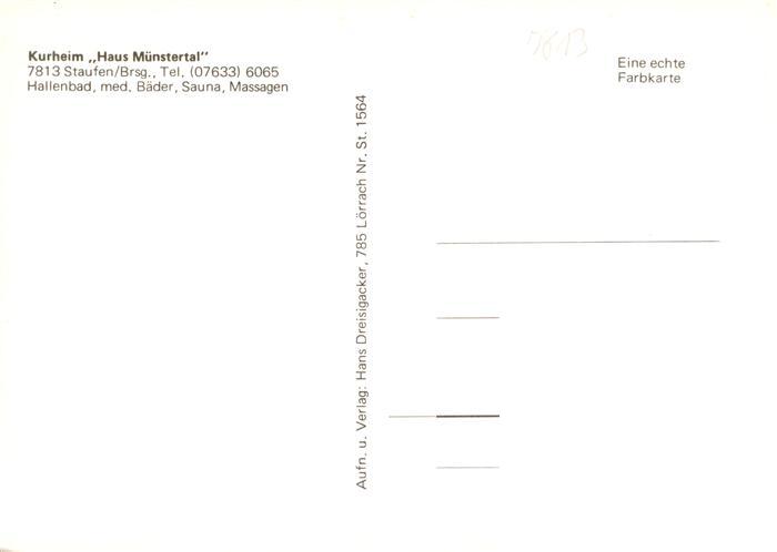 73934923 Staufen Breisgau Kurheim Haus Muenstertal Hallenbad Minigolf Marktplatz Rathaus Spielplatz postalisch nicht gelaufen Erhaltung siehe scans [WerneD78] KatCode: 11110008315108