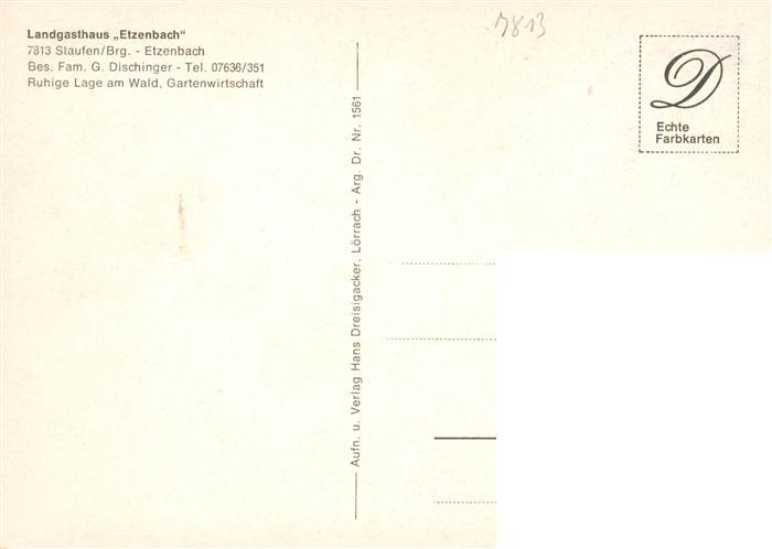 73934830 Staufen Breisgau Landgasthaus Etzenbach postalisch nicht gelaufen Erhaltung siehe scans [WerneD78] KatCode: 11110008315108
