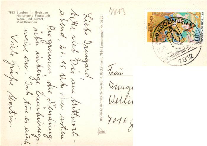 73929863 alte Postkarte Staufen Breisgau Marktbrunnen postalisch gelaufen Erhaltung siehe scans [FriedD77] KatCode: 11110008315108