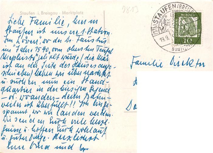 73934836 alte Postkarte Staufen Breisgau Marktplatz postalisch gelaufen Erhaltung siehe scans [WerneD78] KatCode: 11110008315108