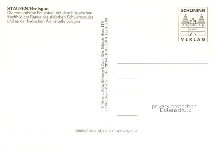 73789516 Staufen Breisgau Ortspartie mit Burgruine Marktplatz Rathaus Brunnen postalisch nicht gelaufen Erhaltung siehe scans [WerneD78] KatCode: 11110008315108