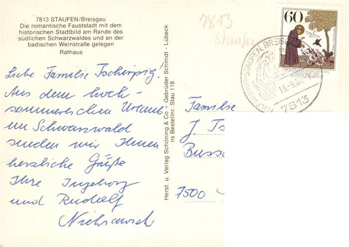 73929837 alte Postkarte Staufen Breisgau Rathaus Marktplatz postalisch gelaufen Erhaltung siehe scans [FriedD77] KatCode: 11110008315108