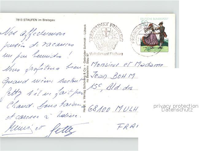 71850717 alte Postkarte Staufen Breisgau Stadtbild mit Burgruine postalisch gelaufen Erhaltung siehe scans KatCode: 11110008315108