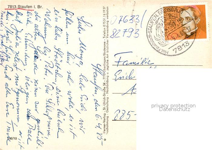 72954382 alte Postkarte Staufen Breisgau Teilansichten Historische Fauststadt postalisch gelaufen Erhaltung siehe scans [FriedD77] KatCode: 11110008315108