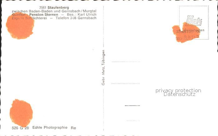 41775356 Staufenberg Gernsbach Gasthof Pension Sternen postalisch nicht gelaufen Erhaltung siehe scans KatCode: 11110008216017