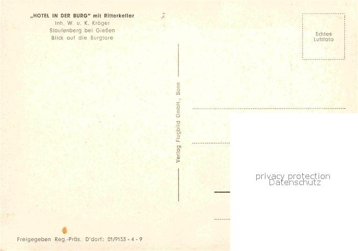 72798770 Staufenberg Hessen Hotel in der Burg mit Ritterkeller Burgtore Fliegeraufnahme postalisch nicht gelaufen Erhaltung siehe scans [FriedD77] KatCode: 11110006531017