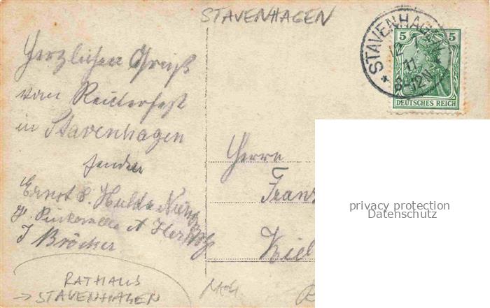 74010762 alte Postkarte Stavenhagen Demmin Mecklenburg-Vorpommern Rathaus Denkmal postalisch gelaufen Erhaltung siehe scans [FriedD77] KatCode: 11110013052074