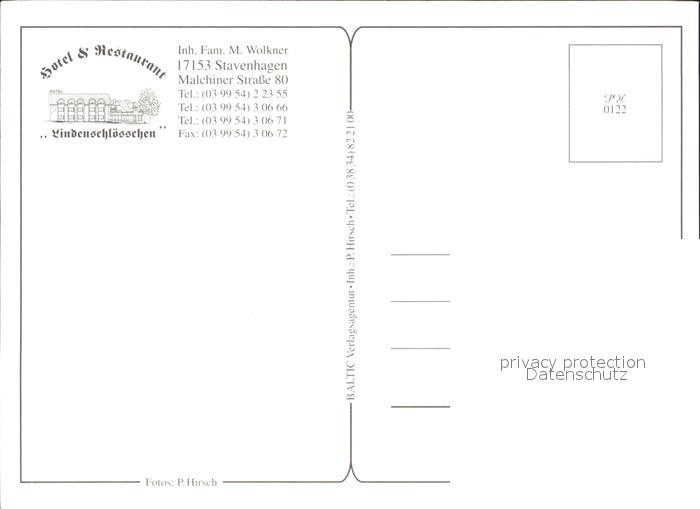 72565724 Stavenhagen Hotel Restaurant Lindenschloesschen postalisch nicht gelaufen Erhaltung siehe scans [LiesaD40] KatCode: 11110013052074