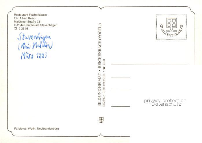 73865108 Stavenhagen Restaurant Fischerklause Gastraum Terrasse postalisch nicht gelaufen Erhaltung siehe scans [FriedD77] KatCode: 11110013052074