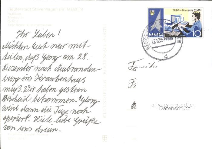 72009141 alte Postkarte Stavenhagen Waldbad Neubauten Schloss Fritz Reuer Literaturmuseum postalisch gelaufen Erhaltung siehe scans KatCode: 11110013052074