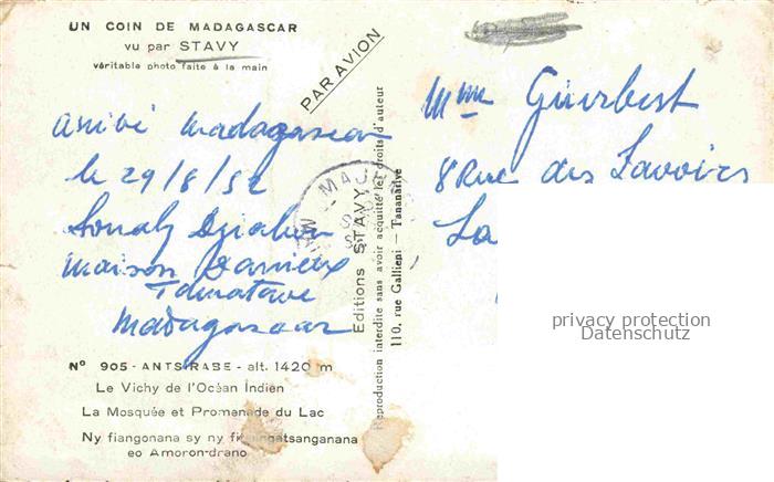 74045209 old postcard Stavy Madagascar Madagaskar La Mosquée et Promenade du Lac postalisch gelaufen Erhaltung siehe scans [FriedD77] KatCode: 18270