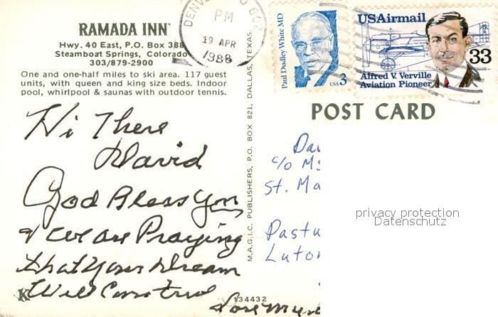 73131803 old postcard Steamboat Springs Ramada Inn Hotel in winter Illustration postalisch gelaufen Erhaltung siehe scans [FriedD77] KatCode: 14140060000000