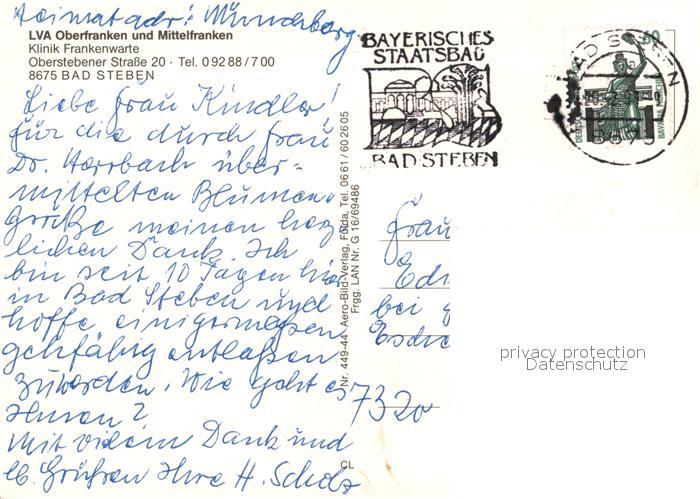 73107094 alte Postkarte Steben Bad Fliegeraufnahme Klinik Frankenwarte postalisch gelaufen Erhaltung siehe scans [KathaD81] KatCode: 11110009475112