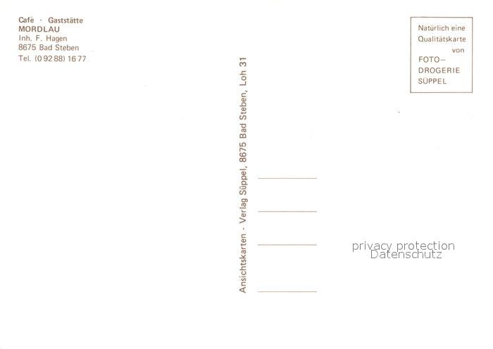73086868 Steben Bad Gasthaus Mordlau postalisch nicht gelaufen Erhaltung siehe scans [KathaD81] KatCode: 11110009475112