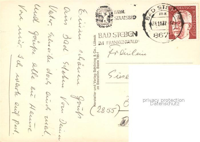 73121783 alte Postkarte Steben Bad Panorama Kuranlagen Karikatur postalisch gelaufen Erhaltung siehe scans [KathaD81] KatCode: 11110009475112