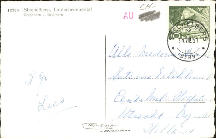 11193207 alte Postkarte Stechelberg Lauterbrunnental postalisch gelaufen KatCode: 11470060175276