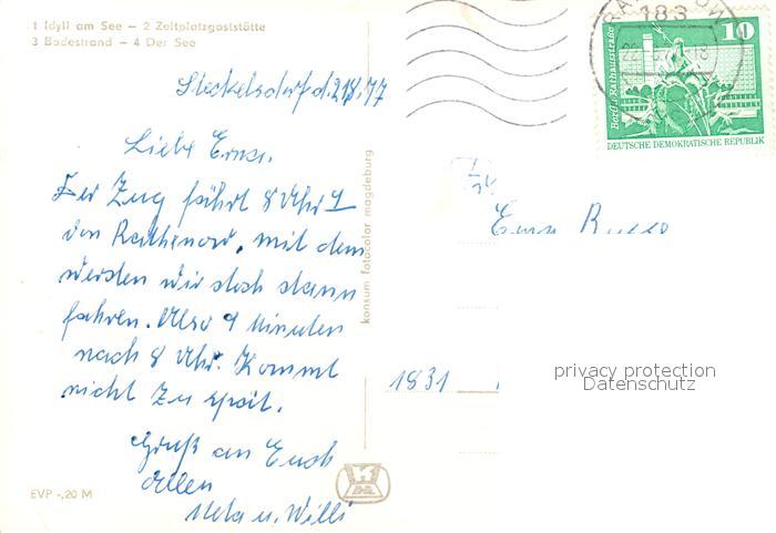 73571543 alte Postkarte Steckelsdorf Erholungszentrum Idyll am See Zeltplatzgaststaette Badestrand postalisch gelaufen Erhaltung siehe scans [WerneD78] KatCode: 11110012063252
