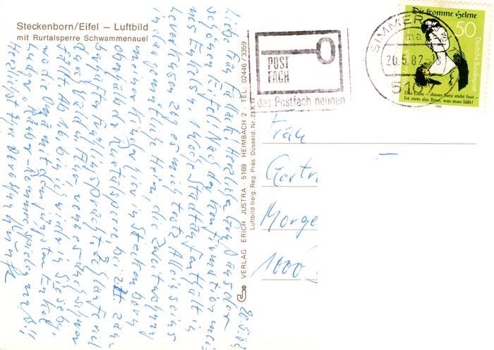 73904455 alte Postkarte Steckenborn Simmerath Fliegeraufnahme mit Rurtalsperre Schwammenauel postalisch gelaufen Erhaltung siehe scans [WerneD78] KatCode: 11110005354028