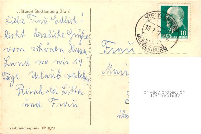 73043606 alte Postkarte Stecklenberg Kurpark Hotel Waldfrieden Waldbad postalisch gelaufen Erhaltung siehe scans [PaolaD17] KatCode: 11110015085305