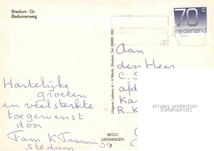 old postcard Stedum Groningen Bedumerweg postalisch gelaufen Erhaltung siehe scans [LiesaD40]