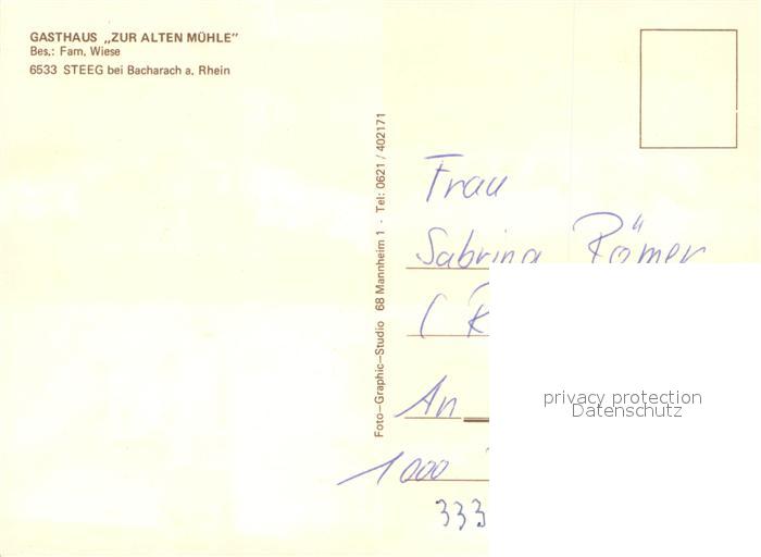 73717484 Steeg Bacharach Gasthaus zur Alten Muehle Gastraeume Zimmer postalisch nicht gelaufen Erhaltung siehe scans [WerneD78] KatCode: 11110007339003