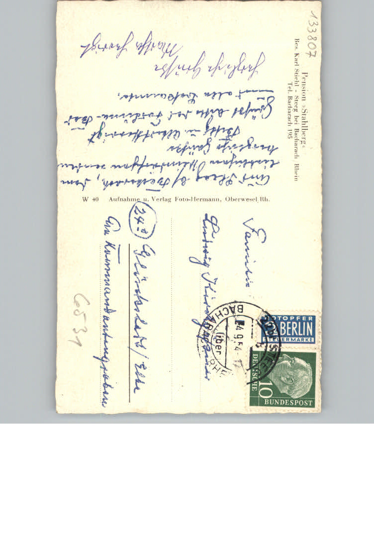 31146621 Steeg Bacharach Pension Stahlberg postalisch nicht gelaufen KatCode: 11110007339003