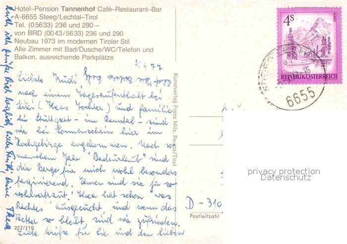 72800668 alte Postkarte Steeg Tirol Hotel Pension Tannenhof Alpenpanorama Fliegeraufnahme postalisch gelaufen Erhaltung siehe scans [FriedD77] KatCode: 11390331070831