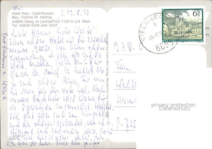 72528302 alte Postkarte Steeg Tirol Hotel Post Restaurant Partie am Lech Alpenpanorama postalisch gelaufen Erhaltung siehe scans KatCode: 11390331070831