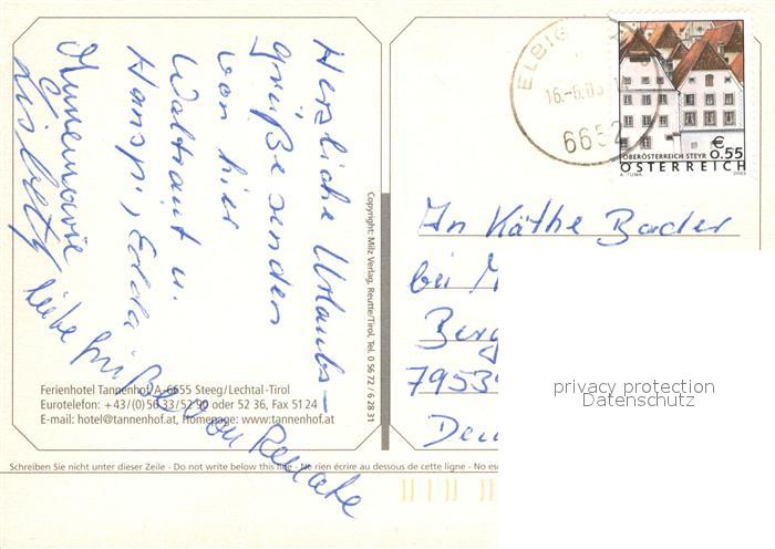 73614141 alte Postkarte Steeg Tirol Hotel Tannenhof Gastraeume Sauna Hallenbad postalisch gelaufen Erhaltung siehe scans [WerneD78] KatCode: 11390331070831