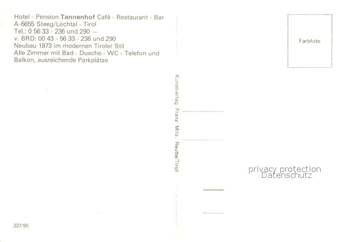 13011853 Steeg Tirol Hotel Tannenhof postalisch nicht gelaufen Erhaltung siehe scans [NatalD47] KatCode: 11390331070831