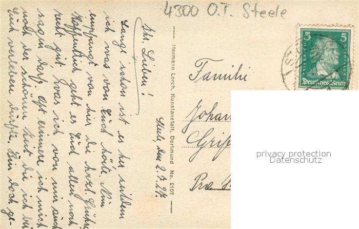 73748723 alte Postkarte Steele Ruhr Panorama postalisch gelaufen Erhaltung siehe scans [WerneD78] KatCode: 11110005113000