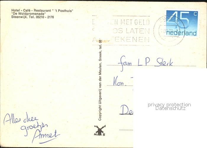 old postcard Steenwijk Hotel Cafe Restaurant t Posthuis De Woldpromenade postalisch gelaufen Erhaltung siehe scans
