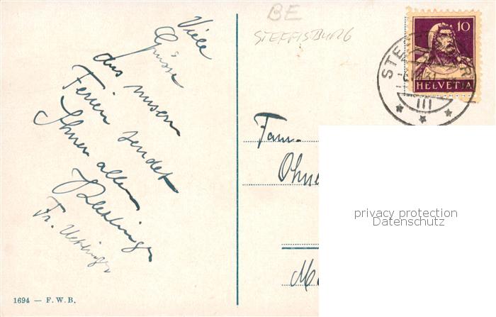 13797888 alte Postkarte Steffisburg BE Aussicht vom Hartlisberg Pension Wirtschaft Bellevue postalisch gelaufen Erhaltung siehe scans [FriedD77] KatCode: 11470060240800