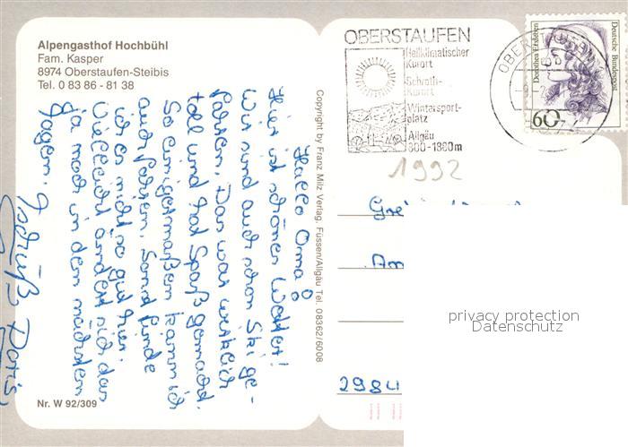 72932222 alte Postkarte Steibis Alpengasthof Hochbuehl im Winter Fam. Kasper postalisch gelaufen Erhaltung siehe scans [LiesaD40] KatCode: 11110009780132