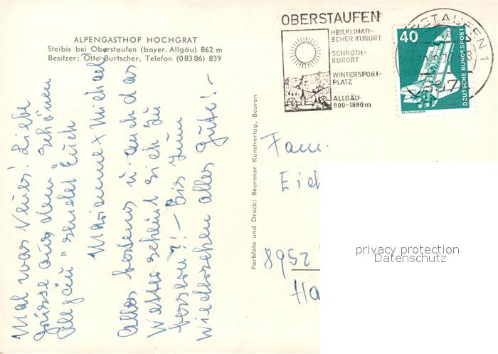 73110374 alte Postkarte Steibis Alpengasthof Hochgrat postalisch gelaufen Erhaltung siehe scans [NatalD47] KatCode: 11110009780132