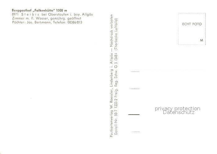 73096708 Steibis Berggasthaus Falkenhuette postalisch nicht gelaufen Erhaltung siehe scans [LiesaD40] KatCode: 11110009780132