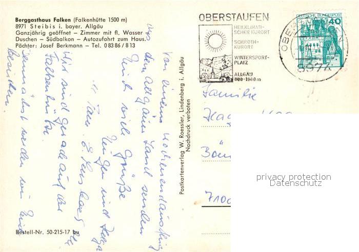 73110466 alte Postkarte Steibis Berggasthof Falken postalisch gelaufen Erhaltung siehe scans [NatalD47] KatCode: 11110009780132