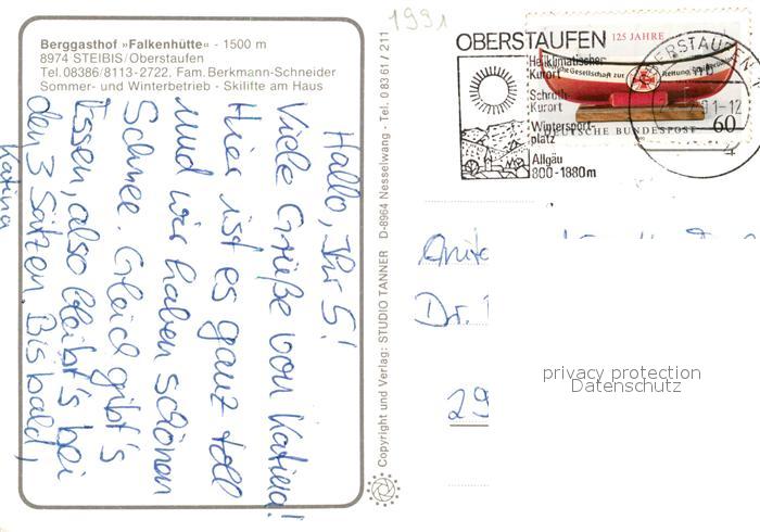 73039819 alte Postkarte Steibis Berggasthof Falkenhuette postalisch gelaufen Erhaltung siehe scans [WerneD78] KatCode: 11110009780132