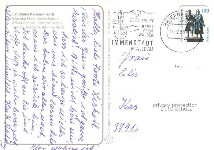 72962129 alte Postkarte Steibis Landhaus Kennerknecht postalisch gelaufen Erhaltung siehe scans [PaolaD17] KatCode: 11110009780132