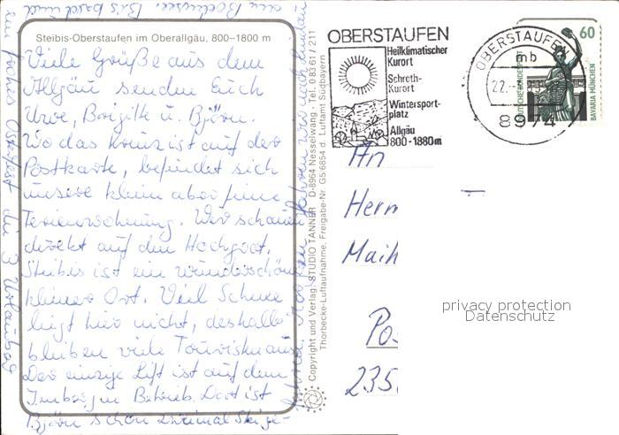 72534221 alte Postkarte Steibis Oberstaufen Bayern Allgaeuer Alpen Fliegeraufnahme postalisch gelaufen Erhaltung siehe scans [FriedD77 kt118box] KatCode: 11110009780132