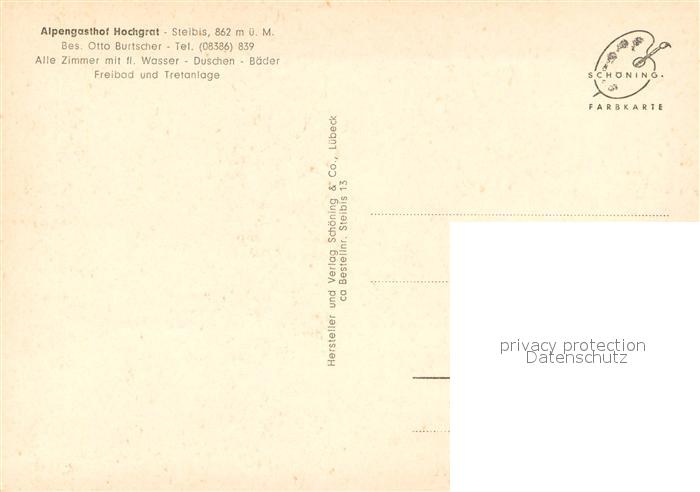 73654493 Steibis Oberstaufen Bayern Alpengasthof Hochgrat Restaurant postalisch nicht gelaufen Erhaltung siehe scans [FriedD77] Frie Katcode 11110009780132