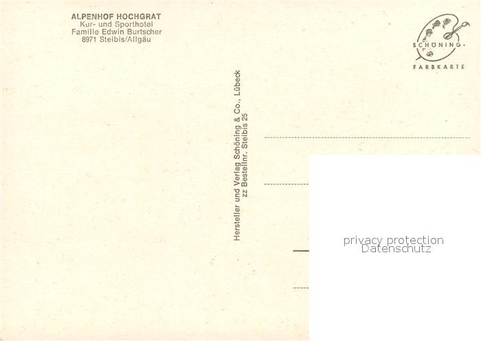 73654489 Steibis Oberstaufen Bayern Alpenhof Hochgrat Kur- und Sporthotel postalisch nicht gelaufen Erhaltung siehe scans [FriedD77] Frie Katcode 11110009780132