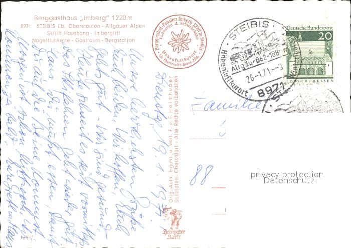 71925544 alte Postkarte Steibis Oberstaufen Bayern Berggasthaus Imberg postalisch gelaufen Erhaltung siehe scans KatCode: 11110009780132