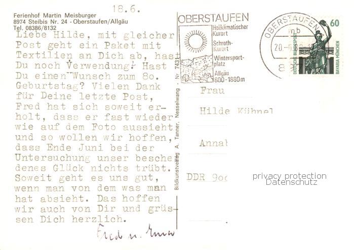 73859061 Steibis Oberstaufen Bayern Ferienhof Meisburger Buchenegger Wasserfall Alpenrose Allgaeuer Alpenvieh Hochgrat Bergstation Hallenbad postalisch gelaufen Erhaltung siehe scans [WerneD78] alte Postkarte Wern Katcode 11110009780132
